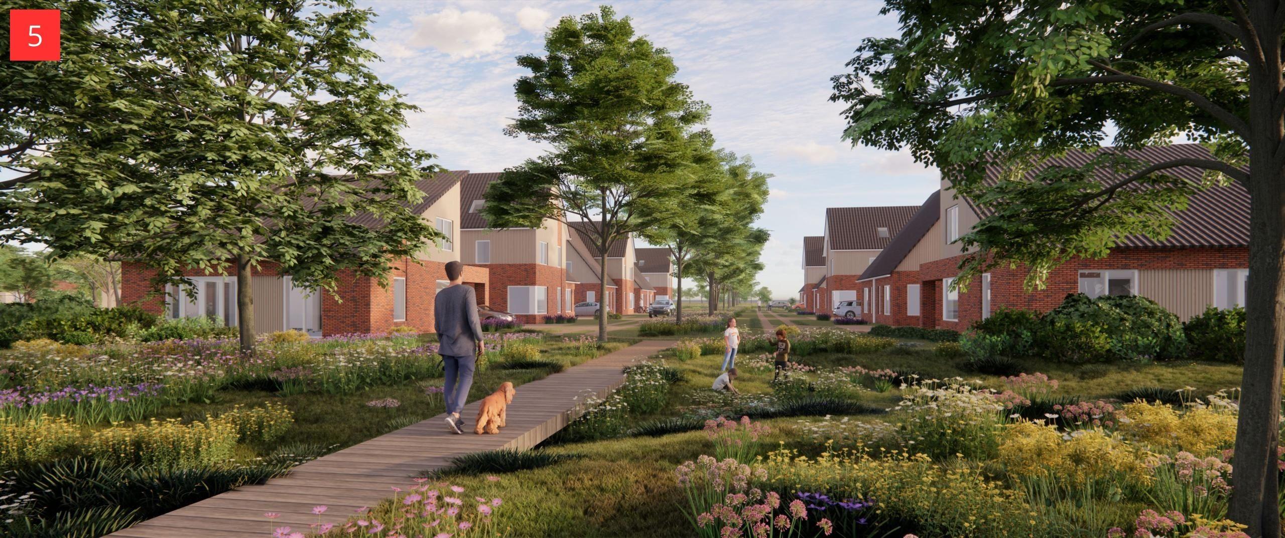 Tegelijkertijd is er veel aandacht voor privacy en rust, met groene afscheidingen en een natuurlijke buffer tussen de bestaande en de nieuwe wijk.