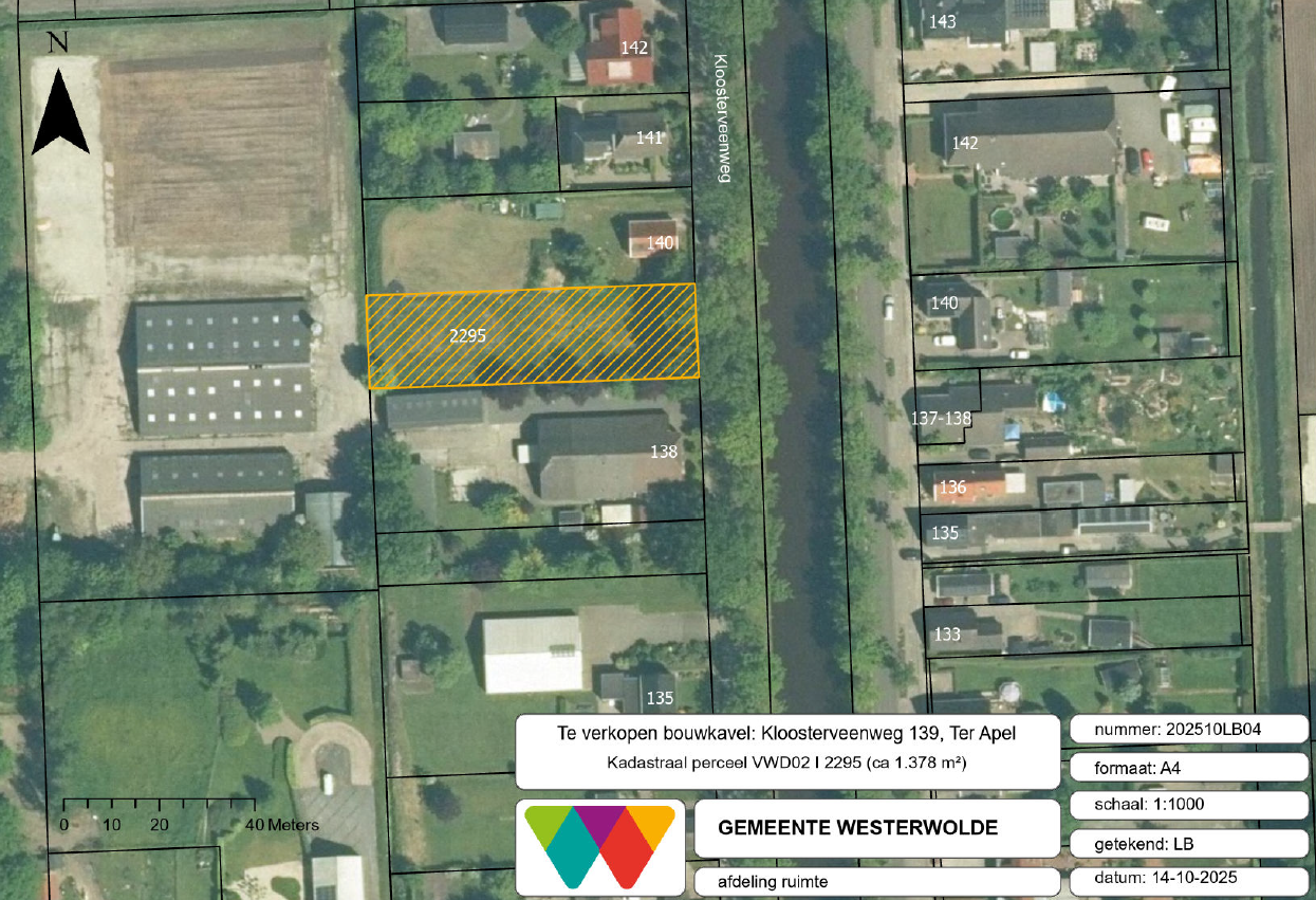 Wonen aan het Stads-Terapel-Kanaal? Aan de Kloosterveenweg 139 in Ter Apel ligt een ruime kavel van 1378 m².